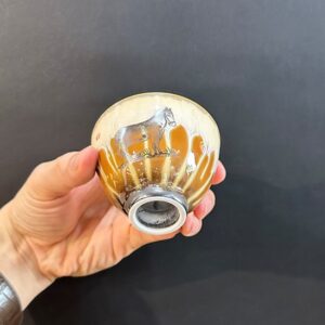 Ly trà sứ cảnh đức gốm thái hội hỏa biến thủ công vẽ ngựa 80ml CS33