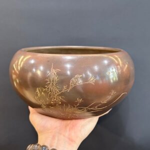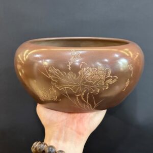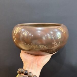 Lư xông trầm bằng đồng nguyên chất họa tiết phỏng cổ đẹp 795g LD12