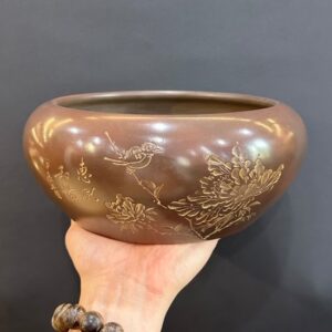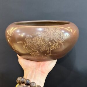 Lư trầm hương bằng đồng nguyên chất dạng treo sen hạc đẹp LD16