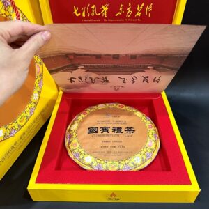 Trà phổ nhĩ chín cao cấp bánh tròn 357g kỷ niệm lần thứ 15 CAEXPO năm 2018.