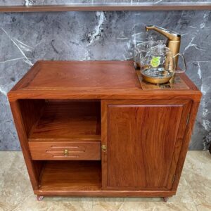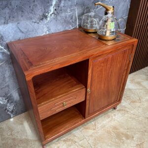 – Công năng: 1 tủ bên phải để bình nước, bên trái là 1 ngăn kéo gỗ và 2 tủ hở để đồ