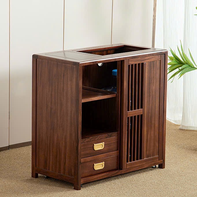 Tủ Trà Di Động Gỗ Mun Sọc 2 Ngăn Kín Cao 66x66x35.5cm BT12