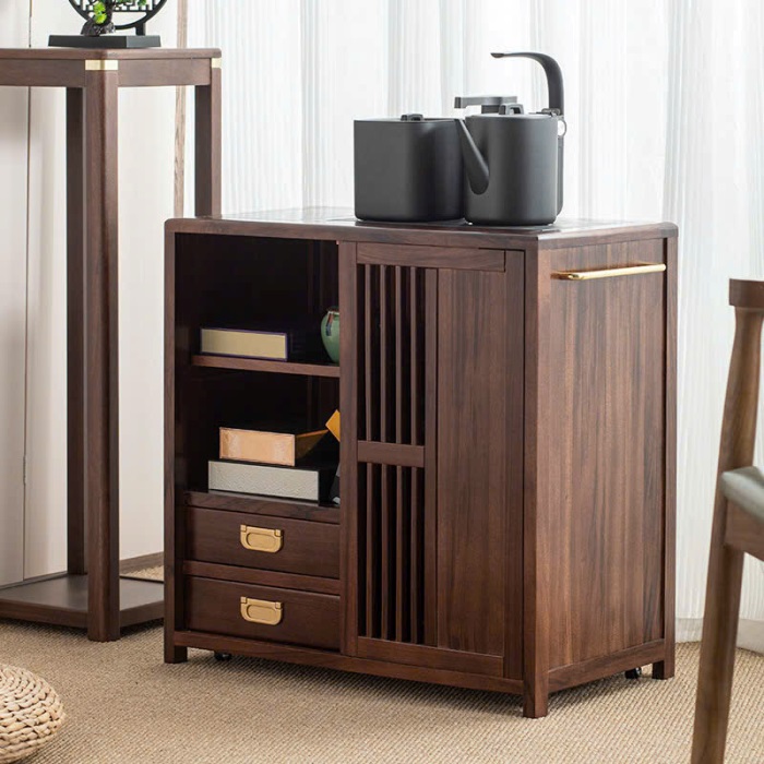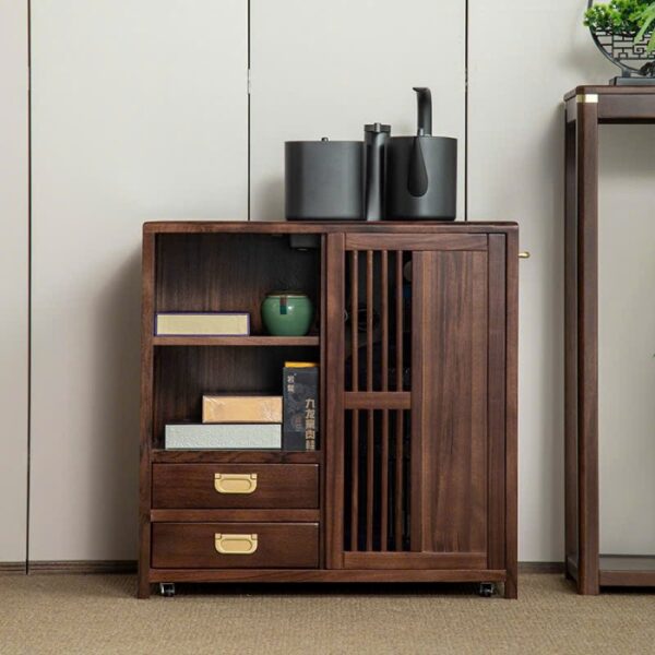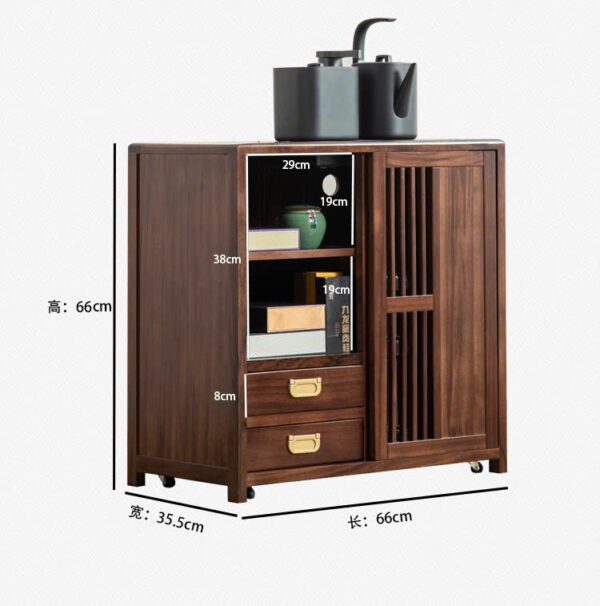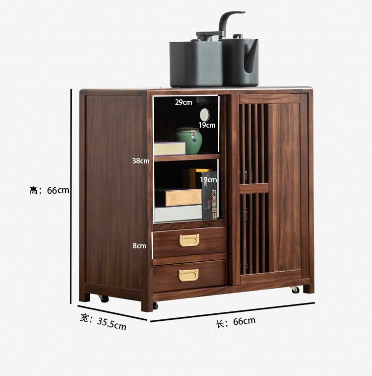 Tủ Trà Di Động Gỗ Mun Sọc Ngăn Kín Cao 66x66x35.5cm BT12