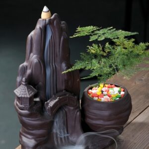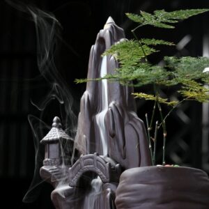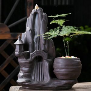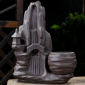 Tượng xông trầm tử sa dạng thác khói trầm hương hình núi đẹp TX07